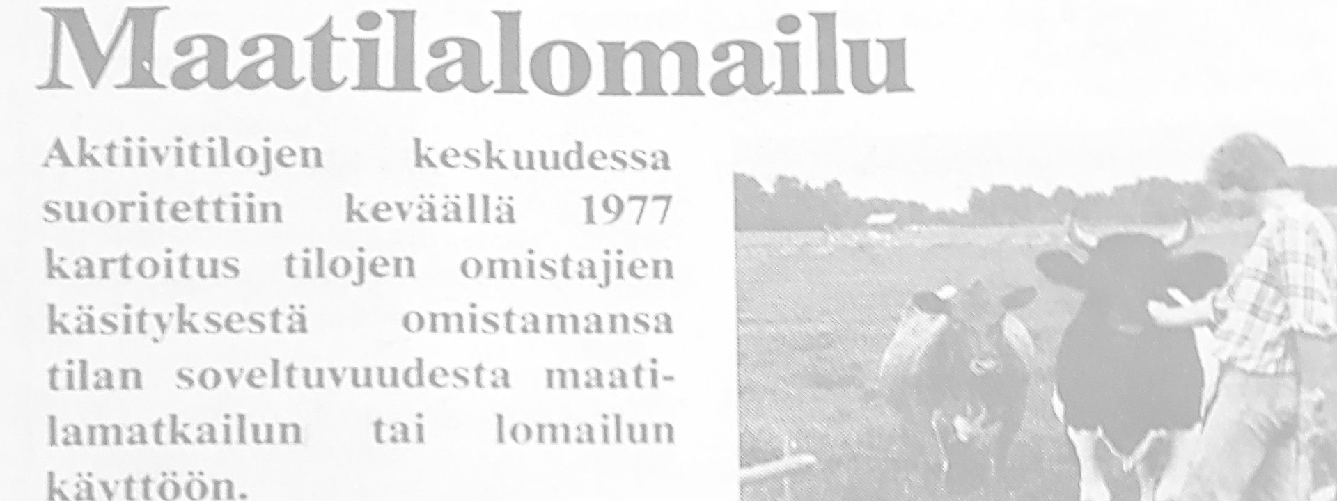 Vuonna 1977 vain 1 % maatiloista oli maatilamatkailukäytössä, selvitti silloinen tutkimuksemme. Lisäksi 4 % maatiloista oli tuolloin halukas kokeilemaan tilaansa maatilalomailuun.